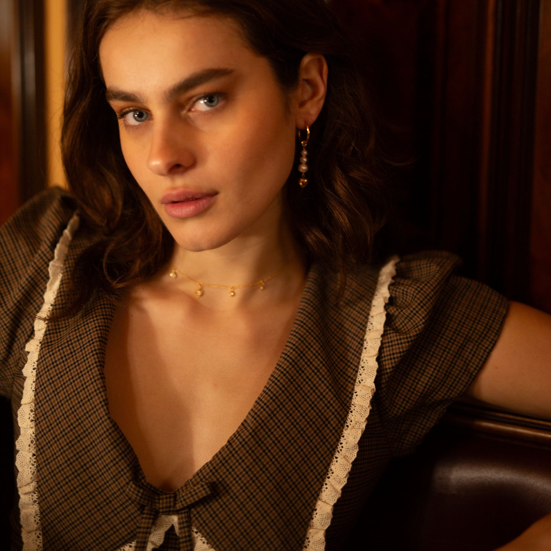Dieser Choker legt sich sanft um Deinen Hals, während der Polarstein in der Mitte wie ein kleiner Stern erstrahlt. Umrahmt von runden, funkelnden Steinen, die das Licht auf geheimnisvolle Weise einfangen, verleiht er Deinem Look eine subtile Raffinesse. Die filigrane Basic Chain fügt sich harmonisch ein und sorgt für eine schlichte Eleganz, die Deine Ausstrahlung auf unaufdringliche Weise unterstreicht. Ein zarter Hauch von Romantik und kosmischer Schönheit, der Deinen Stil perfekt ergänzt.